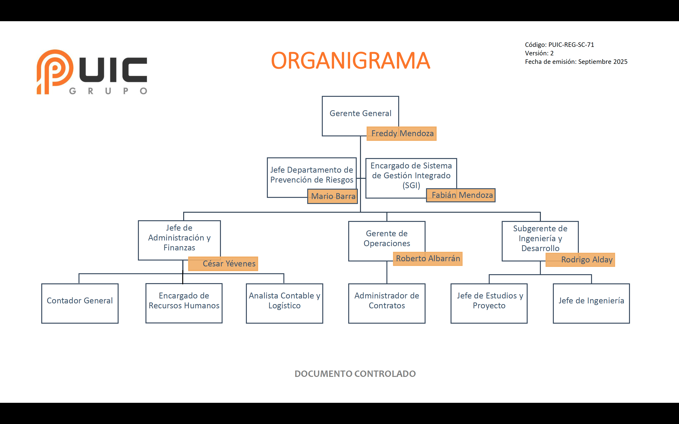 Triple certificación integrada de calidad, seguridad, salud en el trabajo y medioambiente. PUIC es una empresa de ingeniería y construcción especializada que prioriza la satisfacción de sus clientes a través del mejoramiento continuo de sus procesos, la protección de la integridad física y salud de sus colaboradores, así como la conservación ambiental y la prevención de la contaminación de las actividades que desarrolla.
